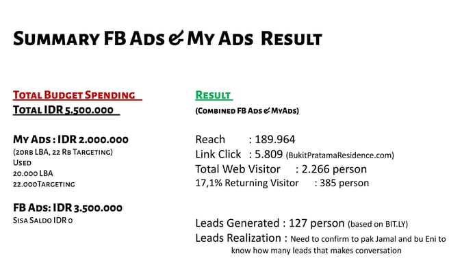 Our Meta Ads & MyAds Telkomsel campaign effectively drove 189,964 reach, 5,809 link clicks, and 2,266 website visitors, with 17.1% returning users, all within a IDR 5.5 million budget. With 127 leads generated (tracked via Bit.ly), the campaign successfully attracted potential buyers. This campaign highlights the power of targeted digital marketing in driving engagement and business growth. 🚀